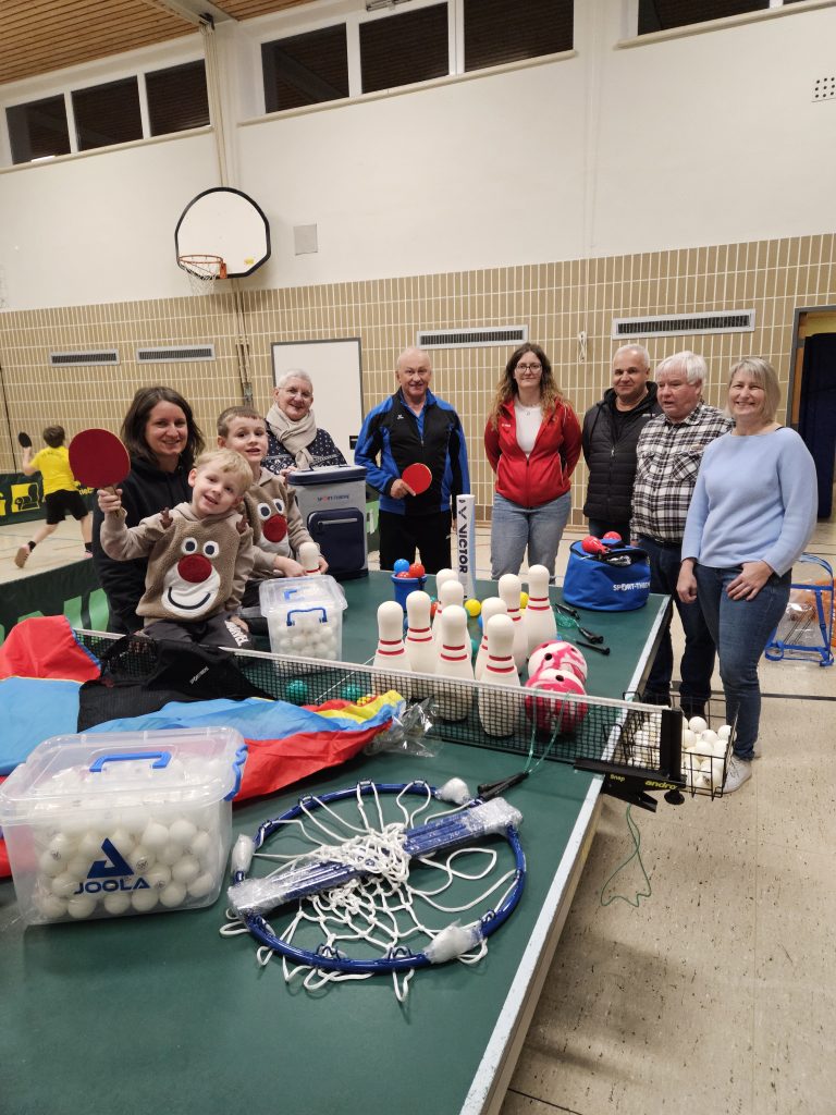 Freuen darf sich der Verein unter anderem über ein Bowling-Set, Sprungseile, ein Fußboden-Basketballnetz, ein Schwungtuch, Tischtennis- und Badmintonbälle, Handpfeifen, neue Mannschaftstrainingstrikots und einer Kühlbox.