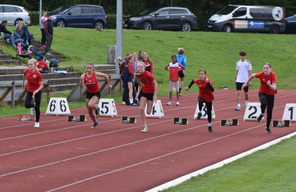 Je nach Altersklasse standen unterschiedliche Disziplinen auf dem Programm: Während die Jüngsten (U10) sich im Dreikampf aus Sprint, Weitsprung und Medizinballwurf maßen, absolvierten die älteren Jahrgänge (U12 bis U18) einen vielseitigen Wettkampf bestehend aus Sprint, Weitsprung, Hochsprung sowie wahlweise Schlagballwurf oder Kugelstoßen. Die Veranstaltung bot so nicht nur spannende Wettbewerbe, sondern auch einen gelungenen Einblick in die Vielseitigkeit der Leichtathletik.