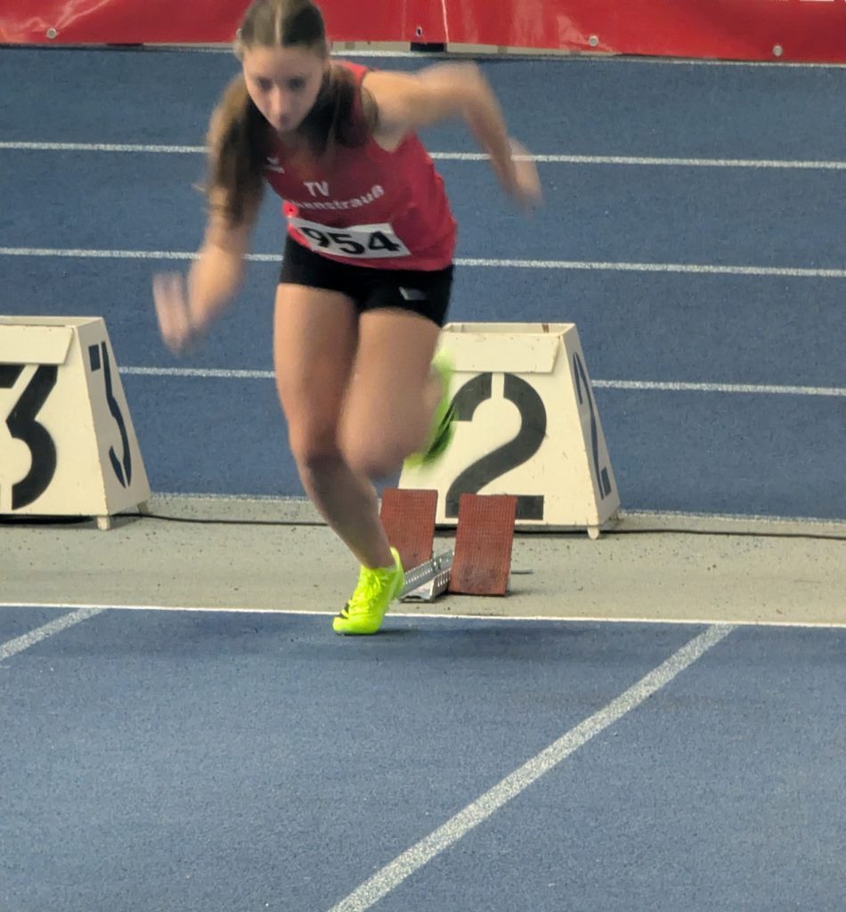 Am Sonntag machten sich Erik Nachtmann, Matilda Malzer, Julia Brunner und Mirijam Klug auf den Weg nach Fürth. Den Auftakt für den TV Vohenstrauß machte Matilda Malzer (W14) über 60 Meter. Sie gewann ihren Vorlauf souverän in 8,70 Sekunden und belegte im Gesamtklassement unter rund 60 Starterinnen einen hervorragenden 9. Platz. Mit dieser Zeit erfüllte sie zudem die Norm für die Bayerischen Meisterschaften.