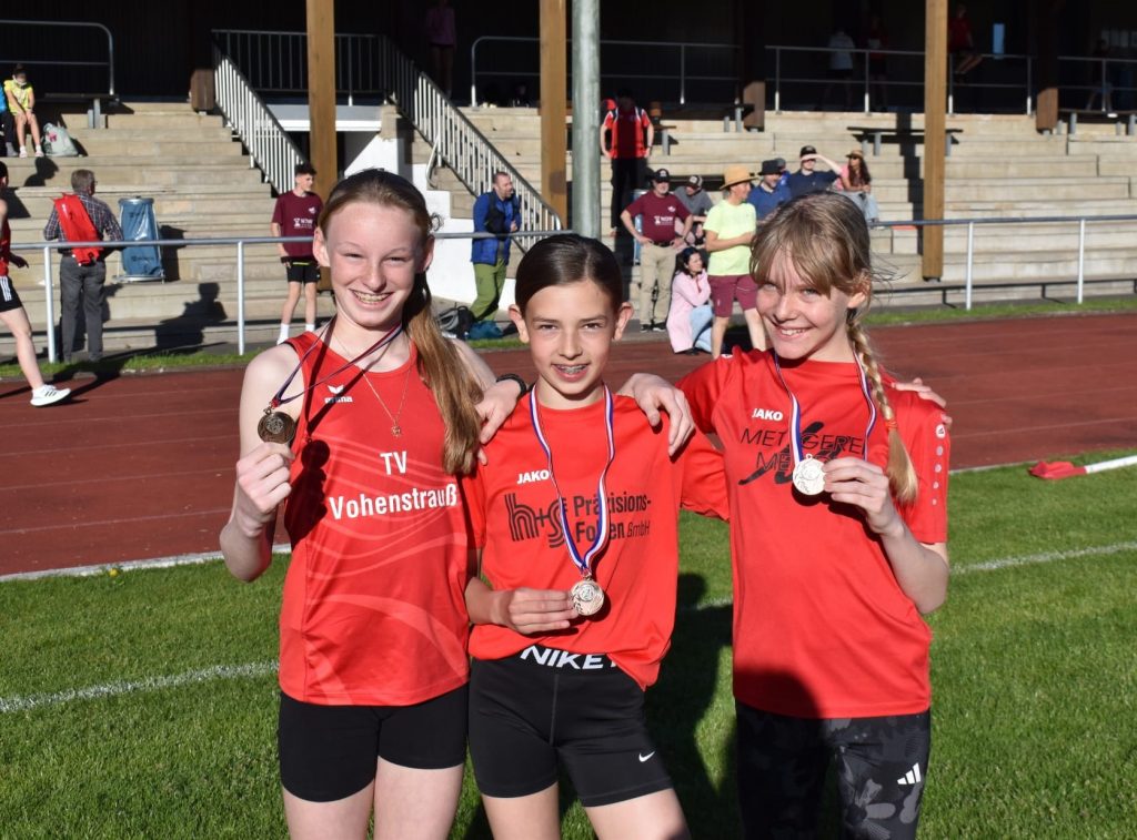 Im Ziel kannte die Freude keine Grenzen: Die drei Nachwuchsathletinnen fielen sich überglücklich in die Arme und feierten ihren hervorragenden dritten Platz. Den Sieg sicherte sich die Staffel aus Kötzting vor dem Team aus Amberg.