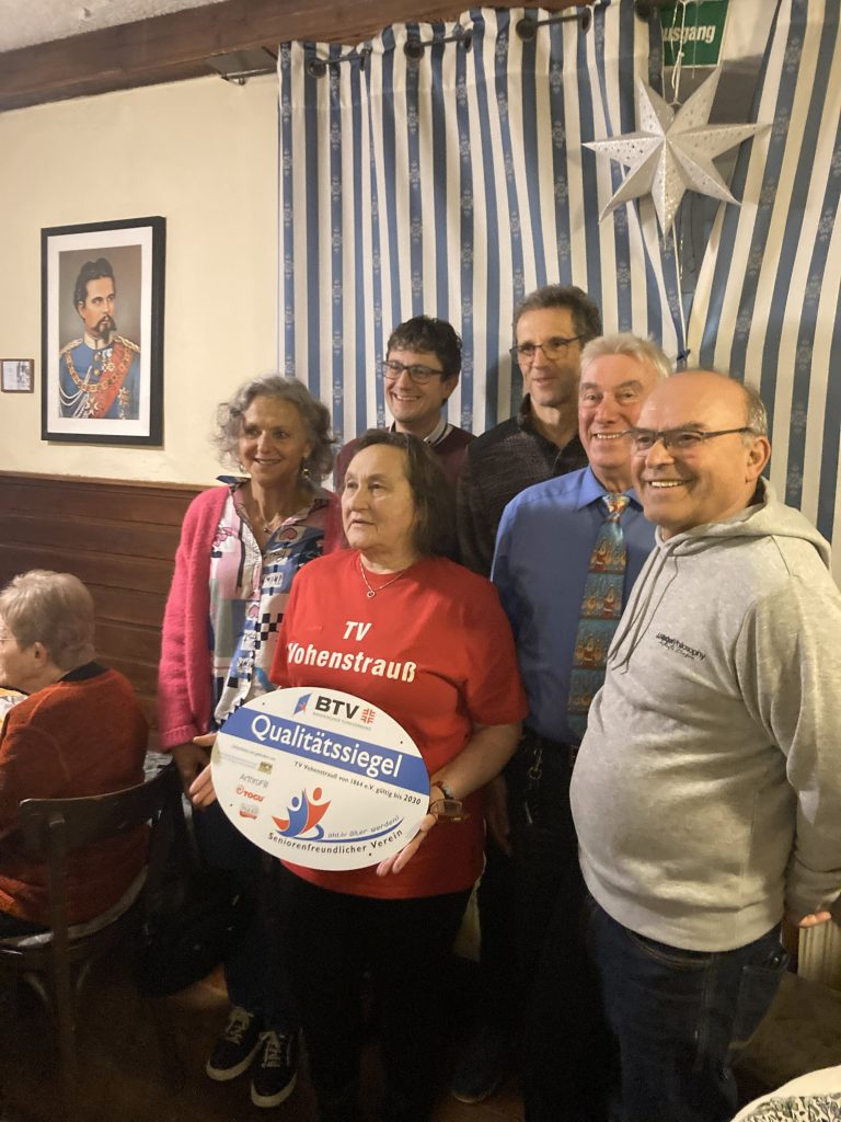 Zum 3. Mal in Folge verlieh der BTV dem TV Vohenstrauß das Qualitätssiegel „Seniorenfreundlicher Verein“. Das Gütesiegel wurde zum 1. Mal 2018 verliehen und muß alle 4 Jahre erneut beantragt werden.Zertifiziert werden Vereine die eine effektive und ganzheitlich integrierende Seniorenarbeit leisten. Zu den zu erfüllenden Kriterien gehören unter anderem die notwendigen Qualifikationen der Übungsleiter.